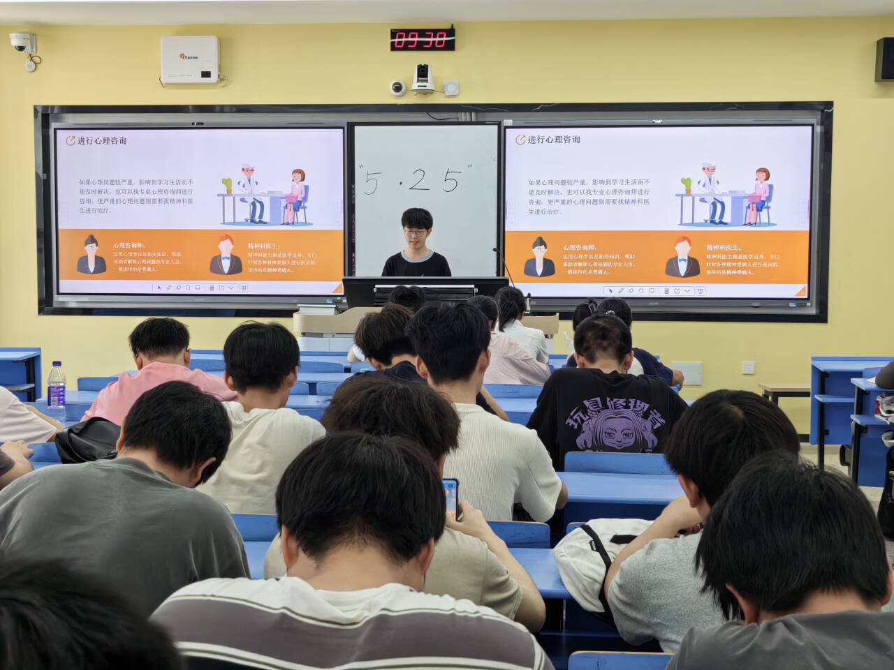 心理班會開始,班長通過輕松有趣的破冰小游戲迅速點燃了現(xiàn)場氣氛。隨后,活動進入核心環(huán)節(jié)——“心靈探索站”。心理委員結(jié)合大學(xué)生常見的學(xué)習(xí)壓力、人際關(guān)系、未來規(guī)劃等話題,分享了實用的心理健康知識和自我調(diào)適技巧,如識別壓力信號、進行積極心理暗示、建立有效溝通模式以及科學(xué)管理時間等。講解深入淺出,貼近同學(xué)們的實際學(xué)習(xí)生活狀態(tài)。