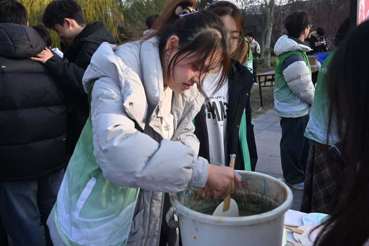 本次活動我院主要承辦文化展陳區和非遺體驗區兩大板塊活動,在非遺技藝體驗區,同學們在傳承人指導下嘗試扎染、拓印、漢繡;在民族體育互動區,板鞋競速、竹竿舞、投壺等項目吸引眾多學生參與。十余項體驗活動,既是技藝學習,更是文化共鳴,讓參與者“以手抵心,以趣入深”,感受傳統文化的溫度與生命力。文化展陳區通過圖文、實物等形式,系統展示我國各民族的歷史淵源、服飾特色、節慶習俗和偉大成就。一幅幅精美圖片、一件件珍貴展品,生動講述“中華民族一家親,同心共筑中國夢”的動人故事,成為一堂生動的愛國主義和民族團結教育實踐課。