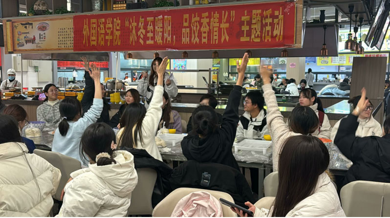 為進一步弘揚中華優秀傳統文化,豐富師生的精神文化生活,營造歡樂祥和的節日氛圍。值此冬至來臨之際,外國語學院在學校南區食堂開展“沐冬至暖陽,品餃香情長”主題活動。學院黨委副書記陳竹、分團委書記陳丹萍以及學生代表近50人參與此次活動。