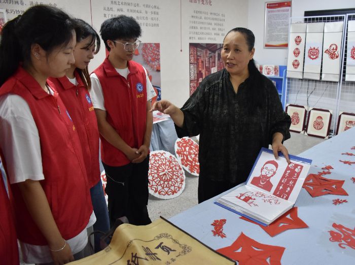 非遺博物館的“紅色剪紙檔案”更帶來意外收獲。一卷1950年的剪報中,“紡線支援前線”“軍民共生產”等民俗剪紙,讓隊員們明白:“紅色文化早就借著剪紙走進了百姓生活。”