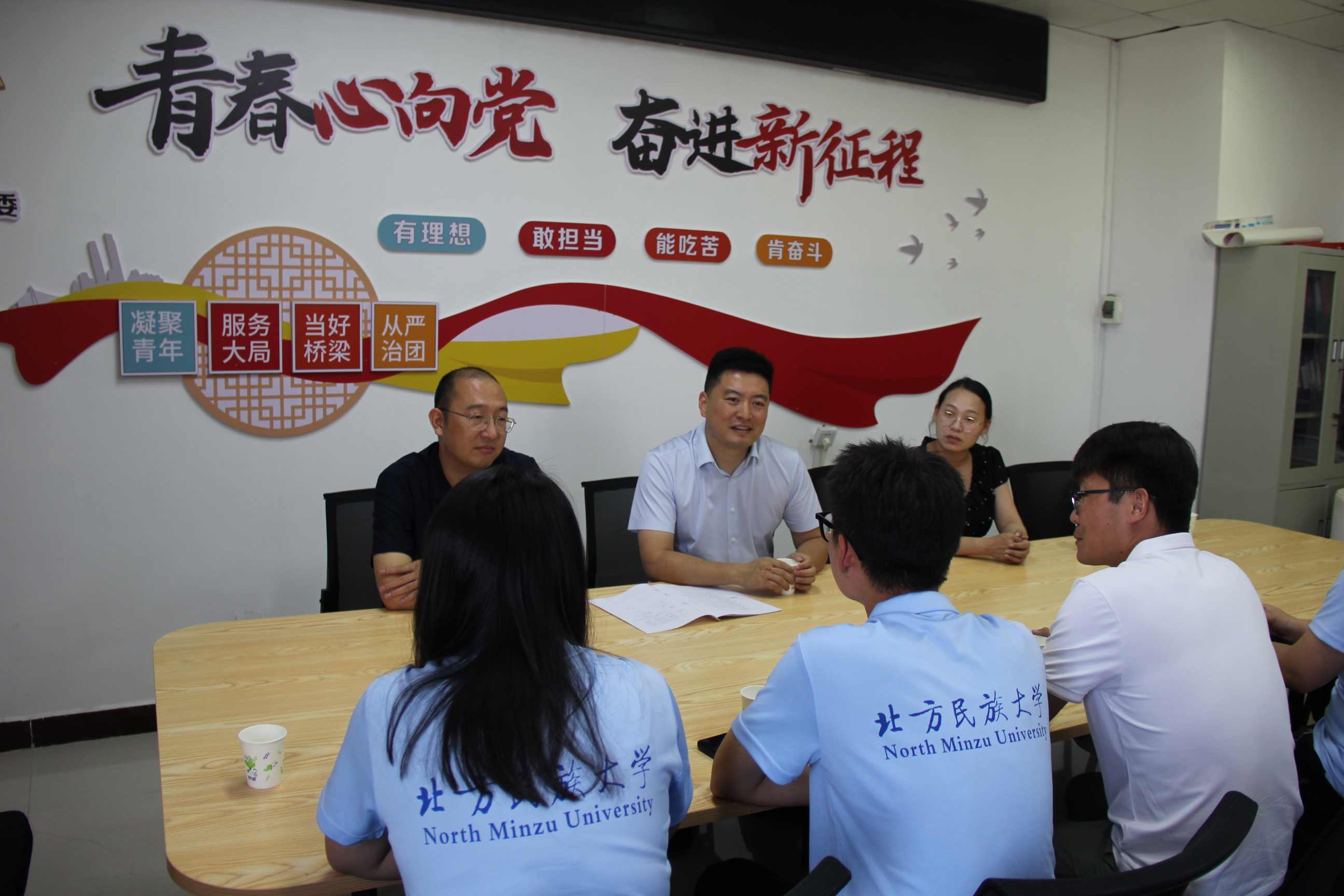 圖為實(shí)踐團(tuán)與確山縣團(tuán)縣委書(shū)記陳勝勝、副書(shū)記李一和副書(shū)記蘇行開(kāi)展座談交流。楊濤 供圖