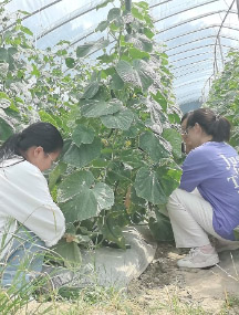 “今天的主要任務是給黃瓜藤整枝打杈,這樣可以讓養分更集中地供應給果實。”果園技術員一邊示范,一邊向隊員們講解。隊員們認真地學習著,然后小心翼翼地操作起來。對于一些生長過密的枝條,他們果斷地修剪掉,確保每一株黃瓜藤都能得到充足的陽光和空間。
