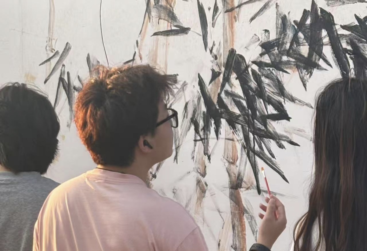 2.從探討墻面彩繪主題到收集鄉(xiāng)土故事,真誠溝通讓藝術(shù)設(shè)計更貼合鄉(xiāng)村底色。在鄉(xiāng)村墻面繪制過程中,團(tuán)隊(duì)根據(jù)與村民的探討結(jié)果和收集到的創(chuàng)意,最終選擇以水墨竹韻為主題進(jìn)行創(chuàng)作。