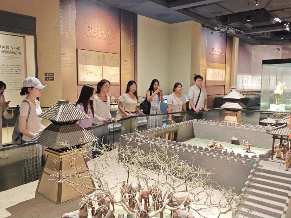 科技賦魂,古韻新生。在齊文化博物館的數字化展區,前沿技術讓千年文脈煥發新活力:隊員們戴上VR設備“穿越”至齊國都城,在虛擬市井中看“臨淄三百閭”的繁華,隨“稷下先生”參與朝堂辯論;機器狗講解員帶著團隊穿梭展廳,精準播報文物背景并實時回應提問,讓參觀更具互動性。這種“傳統文物+現代科技”的融合模式,也在后續走訪的文化企業中得到延伸——在專注齊文化IP開發的企業車間,隊員們看到3D打印的蹴鞠模型、融入“和而不同”思想的文創設計,直觀感受到傳統文化產業化的創新路徑。