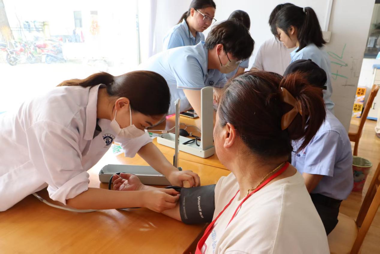 義診隊伍抵達村莊后,迅速在村活動中心布置起臨時“診室”。簡易的桌椅,擺放整齊的血壓計、艾灸,還可以自選中草藥制作香囊,并且準備了免費的艾草錘。村民們聽聞大學生們來義診,紛紛結伴前來。