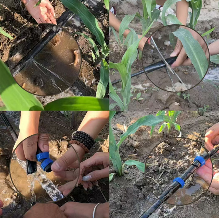 在當(dāng)?shù)卮迕竦膸ьI(lǐng)下,團(tuán)隊(duì)成員深入玉米種植區(qū),實(shí)地考察農(nóng)田灌溉設(shè)施。村民大娘向隊(duì)員們介紹,近年來村里推廣滴灌技術(shù),既節(jié)約了水資源,又提高了作物產(chǎn)量。然而,部分灌溉管道因長期使用出現(xiàn)老化、破損,影響了灌溉效率。了解情況后,團(tuán)隊(duì)成員主動(dòng)請(qǐng)纓,在村民的指導(dǎo)下學(xué)習(xí)滴灌管道的維修方法。大家分工協(xié)作,有的負(fù)責(zé)檢查管道漏點(diǎn),有的幫忙修補(bǔ)裂縫。盡管烈日炎炎,汗水浸透了衣衫,但看到修復(fù)后的滴灌系統(tǒng)恢復(fù)暢通,玉米苗在充足的水源滋養(yǎng)下茁壯成長,隊(duì)員們臉上都露出了欣慰的笑容。