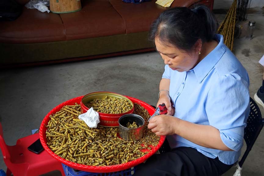調(diào)研行程中,團(tuán)隊(duì)特別走進(jìn)霍山衛(wèi)星石斛有限公司的手工生產(chǎn)基地,目睹傳統(tǒng)石斛加工技藝的傳承與創(chuàng)新。生產(chǎn)車間內(nèi),數(shù)十位村民圍坐在一起,熟練地進(jìn)行著石斛鮮條的分揀、晾曬、纏繞等工序。阿姨將半干的石斛莖條在特制模具上精準(zhǔn)纏繞:“這是制作楓斗的關(guān)鍵步驟,每根楓斗要繞12圈,松緊度全靠手感。”同時(shí),公司采取“企業(yè)+農(nóng)戶”模式,培訓(xùn)村民掌握分揀、烘焙、塑形等10余項(xiàng)手工技藝,將分散的家庭式加工轉(zhuǎn)化為標(biāo)準(zhǔn)化工坊生產(chǎn),目前已帶動(dòng)十余戶村民在家門口就業(yè),人均年收入數(shù)十萬元。