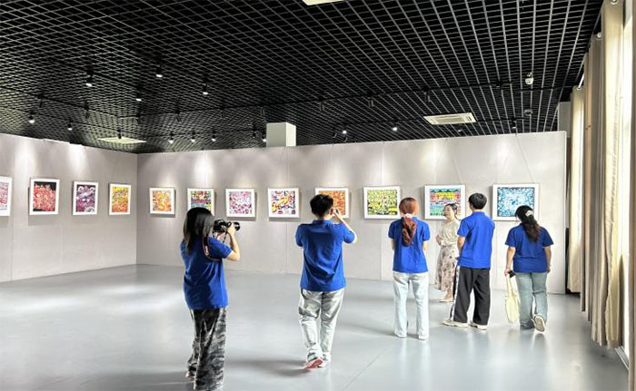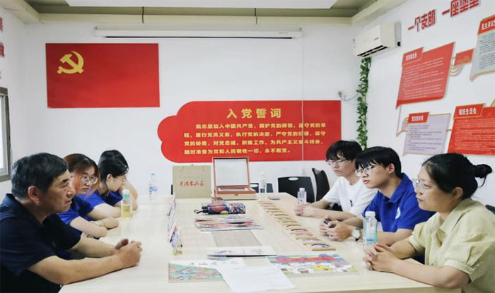 通過(guò)講解,團(tuán)隊(duì)了解到其植根民間藝術(shù),汲取磚雕、剪紙等養(yǎng)分,形成區(qū)別于其他地區(qū)的獨(dú)特風(fēng)格,兼具文人畫(huà)氣質(zhì)與農(nóng)民畫(huà)質(zhì)樸特色。