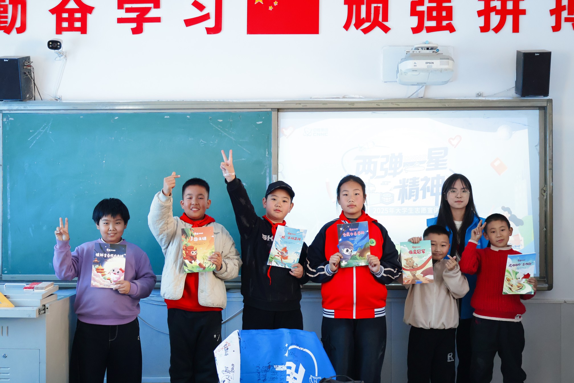面向小學(xué)生群體,構(gòu)建“宣講+科普”啟蒙樂園。 在榆中縣高墩營小學(xué)、夏官營鎮(zhèn)小學(xué)的課堂上,抽象的“兩彈一星”精神化為了生動的故事與斑斕的色彩。宣講團(tuán)精心設(shè)計(jì)《童心繪功勛,星火代代傳》、《星火相傳,核你一起》等課程,通過動畫短片、科學(xué)家故事、趣味問答和“我心目中的功勛科學(xué)家”海報(bào)創(chuàng)作等環(huán)節(jié),讓科學(xué)的種子在歡聲笑語中生根發(fā)芽。孩子們筆下蘑菇云下的歡呼、燈光下的算盤,正是“自力更生”、“大力協(xié)同”精神最純真而深刻的詮釋。