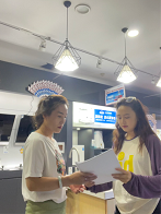 圖為實踐隊員和員工深入交談,了解當地疫情防控政策。中國青年網通訊員 馬越 攝