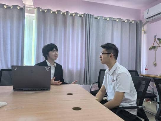 圖為實(shí)踐隊(duì)員采訪公司工作人員。吳思孜 供圖