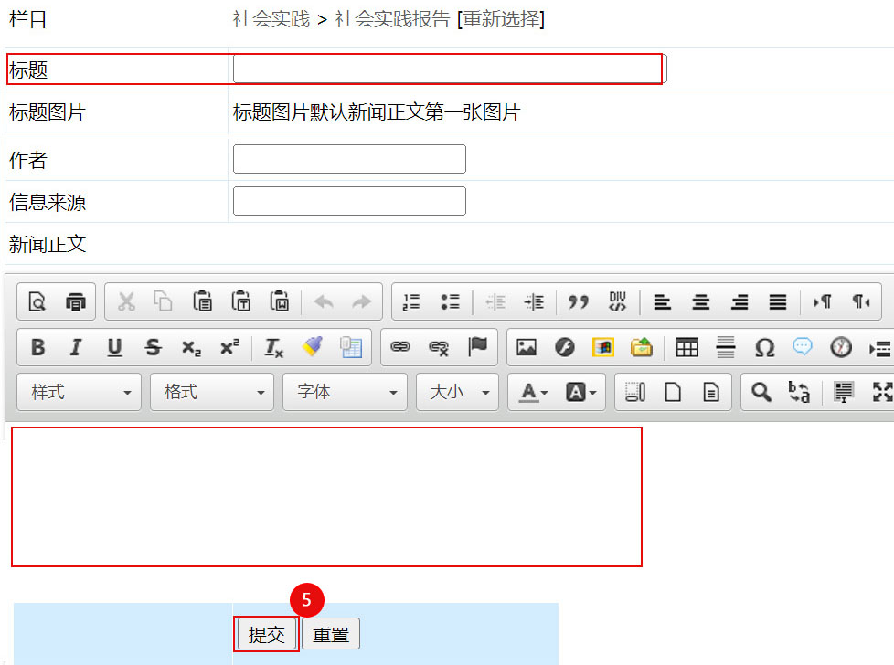 5.填寫好標題,新聞正文作者等內容,點擊提交即可