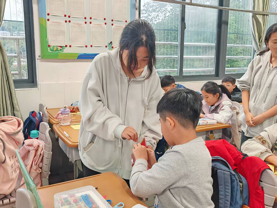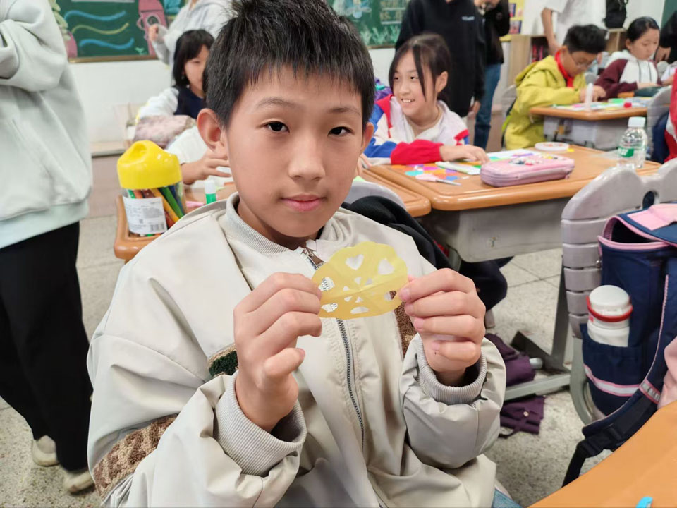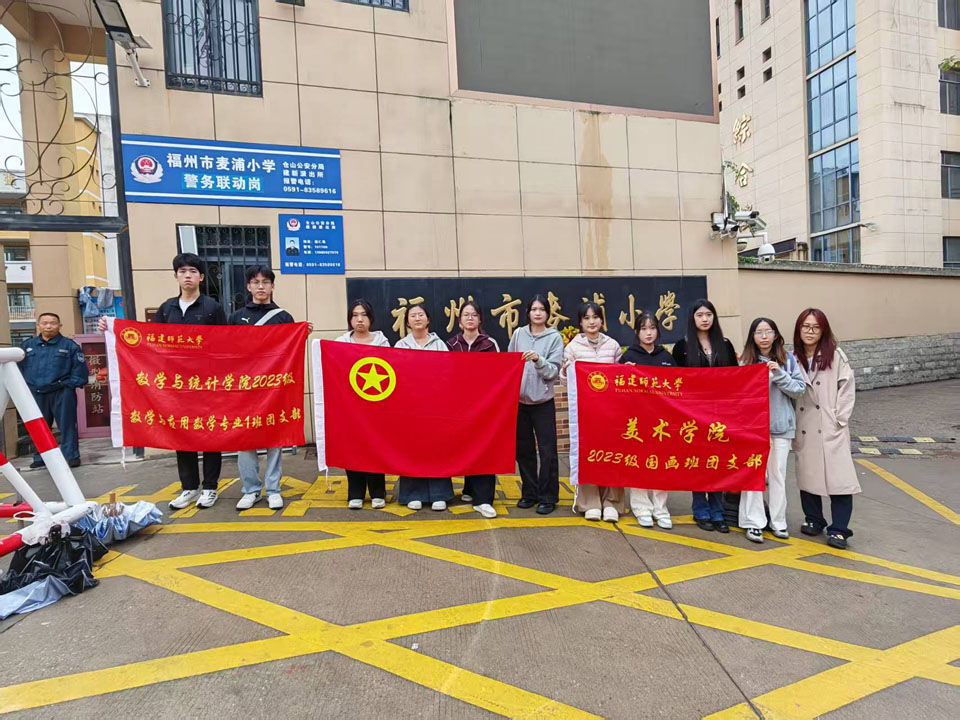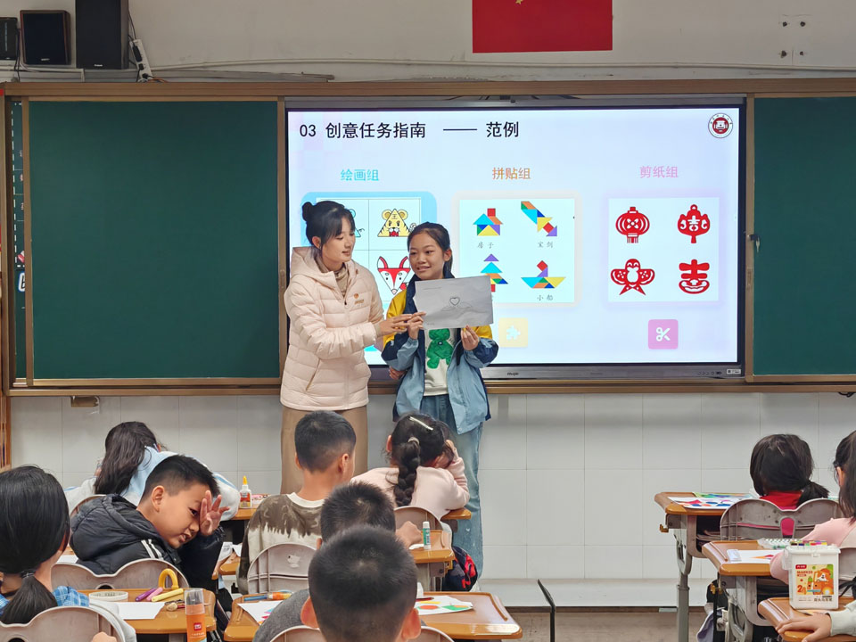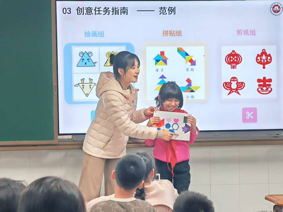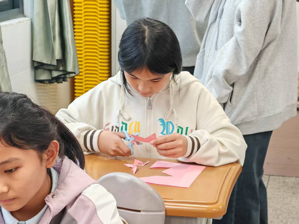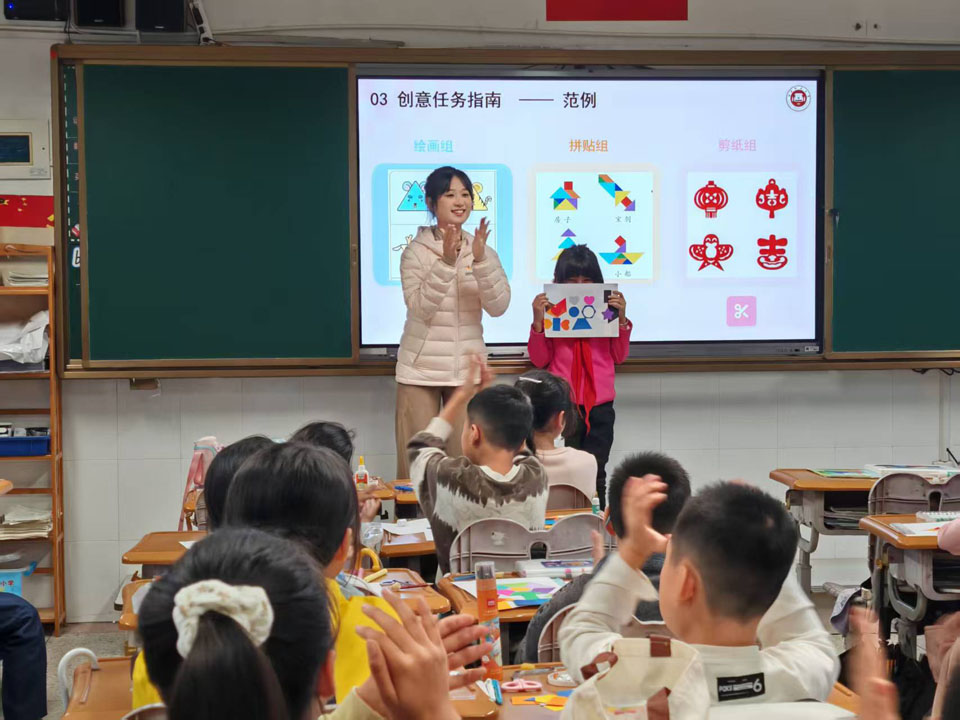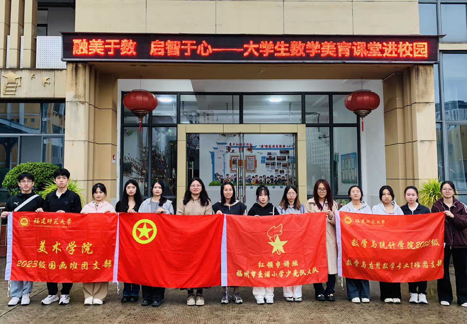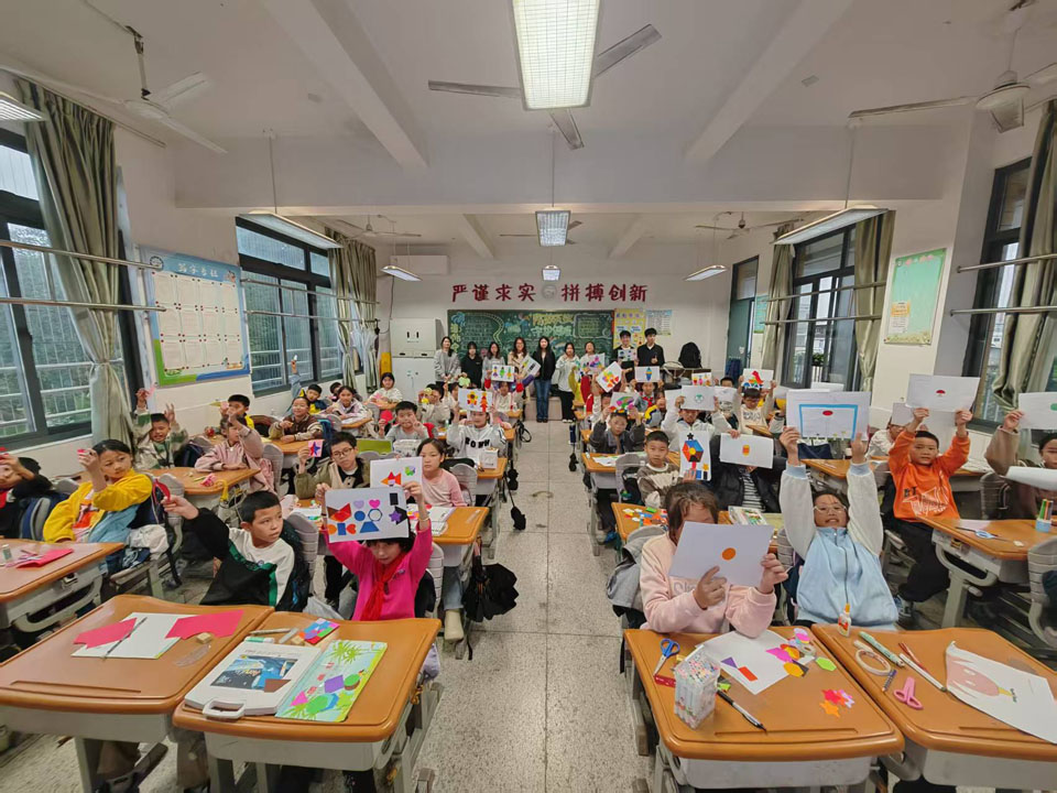 11月4日下午,福建師范大學(xué)數(shù)學(xué)與統(tǒng)計(jì)學(xué)院2023級(jí)數(shù)學(xué)與應(yīng)用數(shù)學(xué)專業(yè)1班團(tuán)支部聯(lián)合福建師范大學(xué)美術(shù)學(xué)院2023級(jí)國畫班團(tuán)支部于福州市麥浦小學(xué)組織以“融美于數(shù),啟智于心”為主題的數(shù)學(xué)美育課堂活動(dòng)。此次活動(dòng)面向五年2班學(xué)生,通過繪畫、拼貼、剪紙的藝術(shù)形式,引導(dǎo)學(xué)生在實(shí)踐中感受軸對(duì)稱圖形的對(duì)稱美與和諧美,探索數(shù)學(xué)學(xué)科的美育功能。